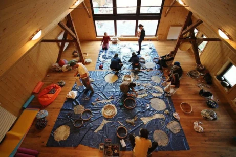 🍃 Atmosféra a prostředí – spojení s přírodou, různorodé etnické hudební nástroje a naladit se na hloubku hlasu, ticha a samostatné práce. Inspirační prostředí, které podporuje sebereflexi a kreativitu.